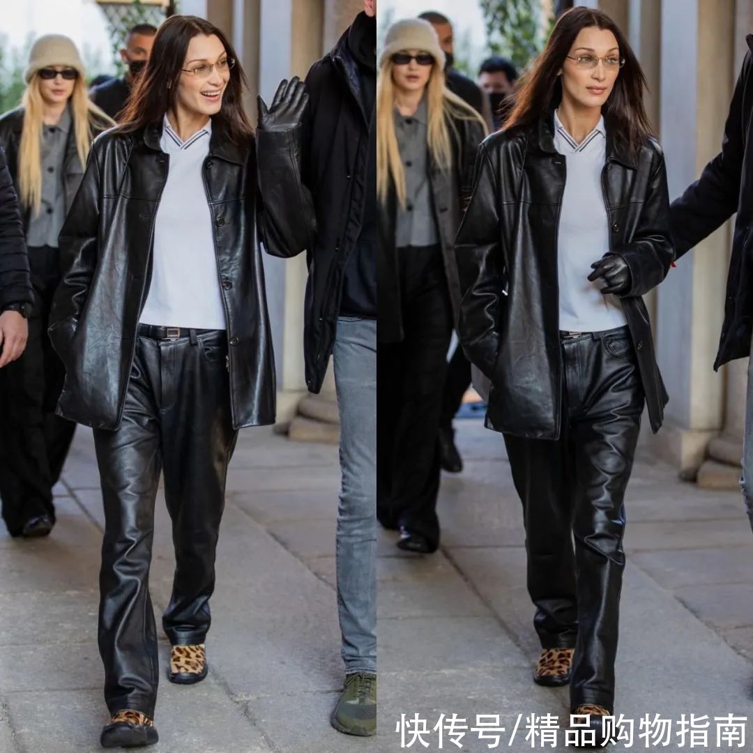在Bella身上总能看见一种微妙的中性气质,“酷”作为她的标志性标签,最适合用皮衣来诠释。走完Proenza Schouler秀后她以一件皮衣混搭运动鞋,墨镜一戴谁都不爱。