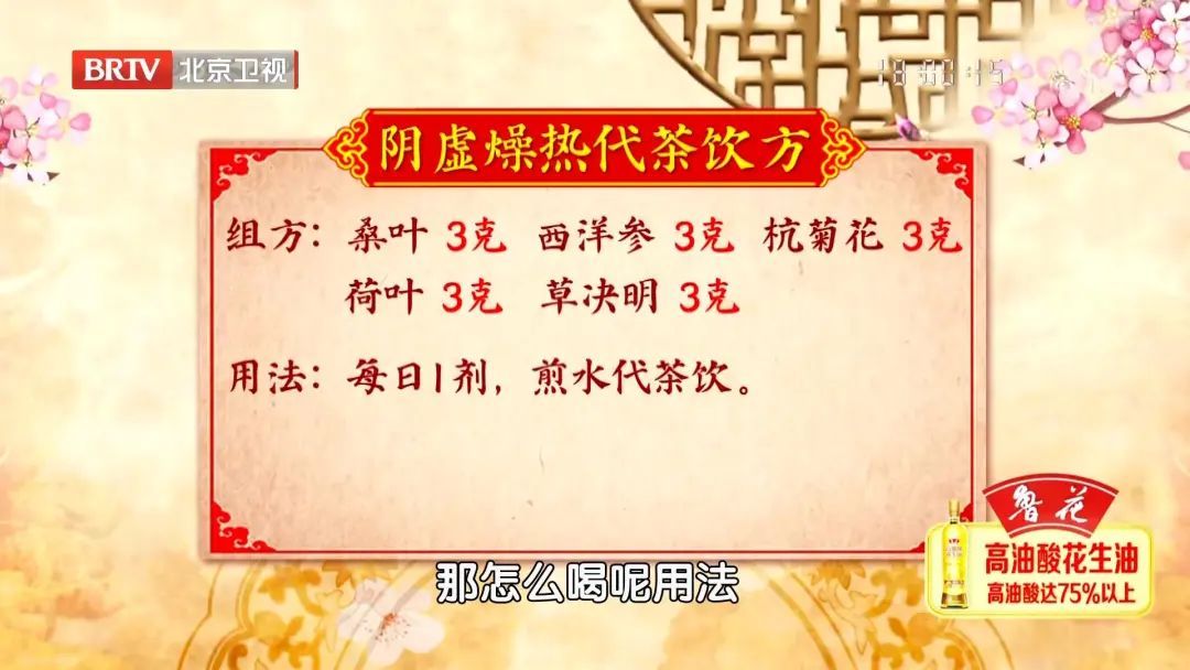 专家还带来一道清五脏之火的代茶饮,适合肝火旺,眼睛经常有眼屎、脾气比较急、有燥热感的人,春季服用还能起到很好的保肝作用。