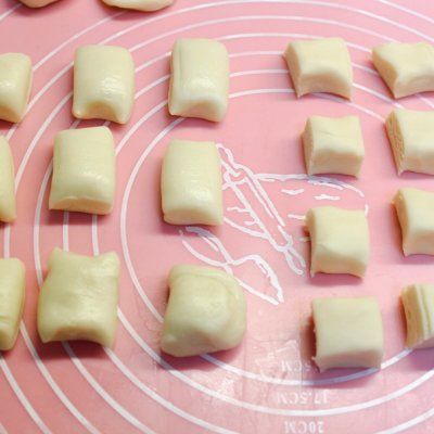 5、将水油皮和油酥分别分成大小均匀的15个剂子;