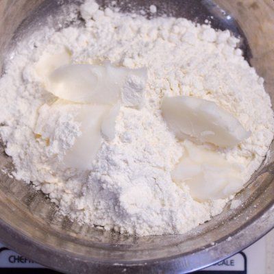 3、制作油酥:低筋面粉120克、猪油60克,和成油酥面团;