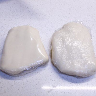 4、两种面团都用保鲜膜包裹好放冰箱冷藏松弛半小时以上;