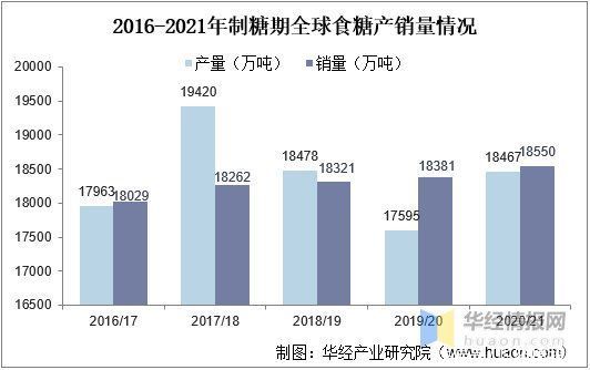 随着全球食糖行业的不断发展,食糖的产销量也随之不断增长。据资料显示,2020/21年制糖期全球食糖产量将达到18467万吨,同比增长5%,有望达到历史次高水平;销量将达到18550万吨,同比增长0.92%。