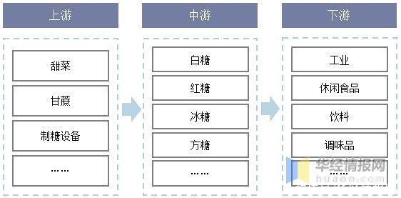 食糖行业产业链上游主要原材料为甘蔗、甜菜等糖料作物;中游为食糖加工制备;下游广泛应用于工业、休闲食品、饮料、调味品等行业。